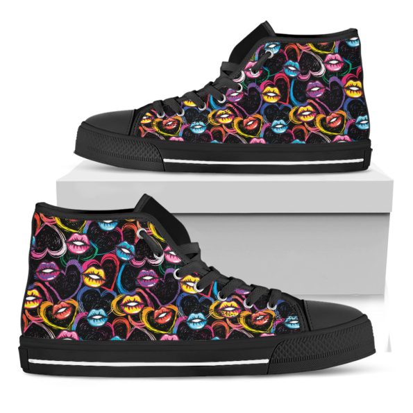Funky Kiss Lips Pattern Print Black High Top Shoes